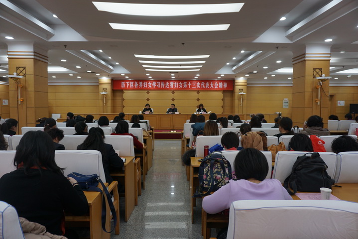 2017年12月15日下午,区妇联在在历下大厦三楼中心会议室组织全区各界妇女学习传达山东省妇女第十三次代表大会精神。区委常委周雷出席会议。 会上,区妇联主席李健同志介绍了大会的盛况、传达了山东省第十三次妇女代表大会会议精神。区委常委周雷同志作了重要讲话,周雷指出,今年以来,全区妇联组织坚持服务大局、服务基层、服务妇女儿童,用心改善千家万户民生民利,用情维护妇女儿童合法权益,用力促进全区大局和谐发展,承担了大量的社会责任,在全区妇女事业发展、经济社会发展和民生保障改善等方面作出了突出贡献。全区广大妇女自立自强、奋发有为,在各个领域、不同岗位上充分发挥着“半边天”的作用,积极为加快建设大美、幸福、现代的首善之区凝聚智慧、贡献力量。 周雷同志结合前期学习党的十九大与省第十三次妇代会精神体会,对全体与会人员提出了六点要求:一要将以“人民为中心”作为干事创业的根本前提,诚心诚意为民办实事,竭心尽力为民解难事,坚持不懈为民做好事;二要将担当精神作为砥砺前行的不竭动力,把担当体现在目标定位上,体现在用心履职上,体现在“为敢于担当者而担当”上;三要将改革创新作为工作提质升级的能量源泉,秉承开拓创新的理念,落实妇联改革的要求,丰富联系群众的手段;四要将高效执行作为奋发进取的重要保障,围绕精神状态提高执行力,围绕领导带头提高执行力,围绕制度机制提高执行力,围绕干部素能提高执行力;五要将践行法治作为解决问题的基本遵循,学法懂法,信法守法,依法办事;六要把修身立德作为筑牢底线的永固基石,要旗帜鲜明讲政治,引领文明和谐新风尚,展现新时代历下巾帼修养。 区妇联执委,各街道、委局妇联及直属企业妇委会妇联干部,各社区妇联主席等140余人参加会议。